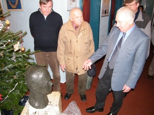 Prof. B. Herrmann rief gleich nach der Enthüllung den Schöpfer der Büste, Gerhard Rommel an.